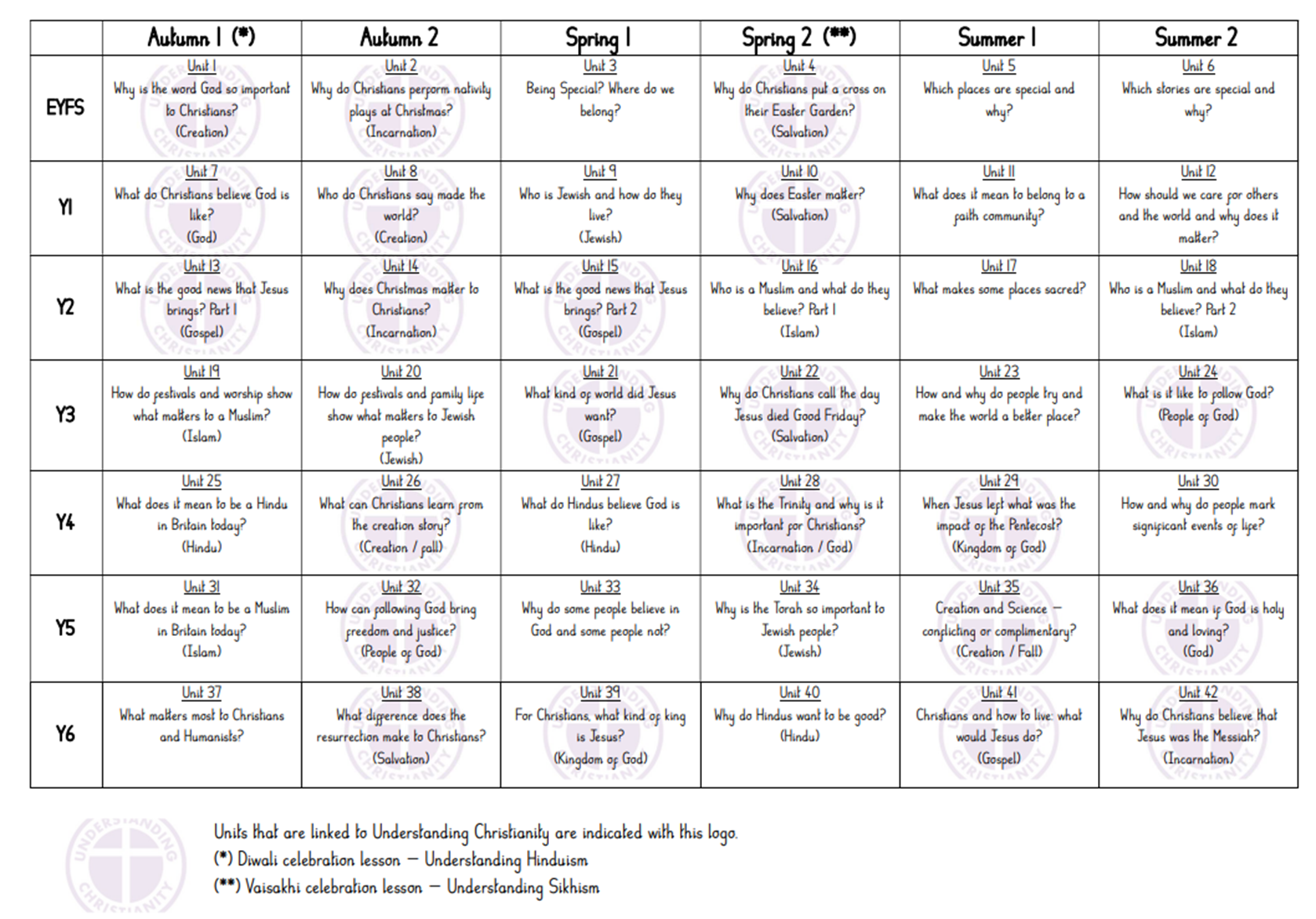 At All Saints C of E Primary School, Religious Education is taught using the NATRE Scheme of Work, which incorporates the Leicestershire Agreed Syllabus alongside the Understanding Christianity materials. In line with national guidance, 50% of all RE teaching focuses on Christianity, with lessons primarily following the Understanding Christianity scheme. The remaining 50% covers other faiths and world views, including Judaism, Hinduism, Islam, Buddhism and Sikhism, as well as perspectives held by those who do not follow a particular religion.